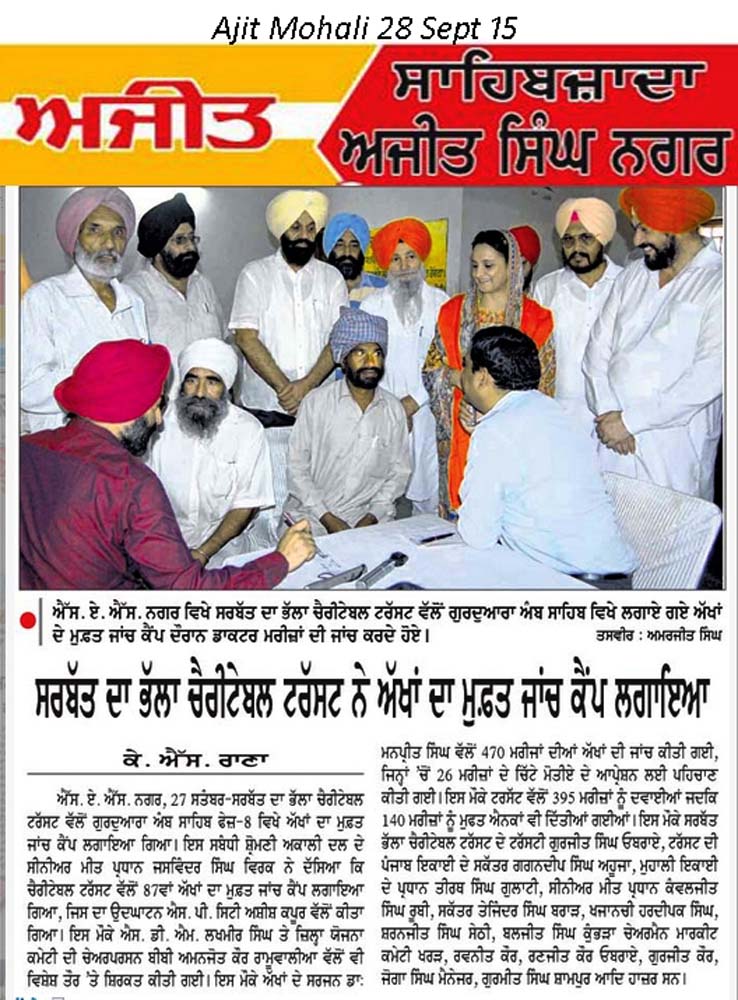 Eye Camp no.87, organised at Mohali on 27-09-15