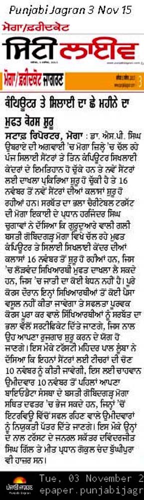distributed to successful candidates of Two Sewing Centre Jiwan Singh Nagar, Kotkaura and Navan Qila, Faridkot
