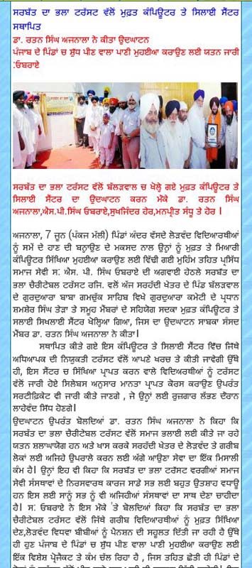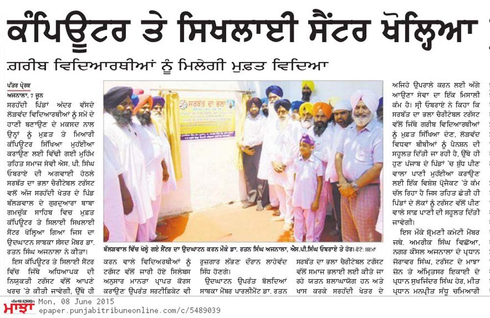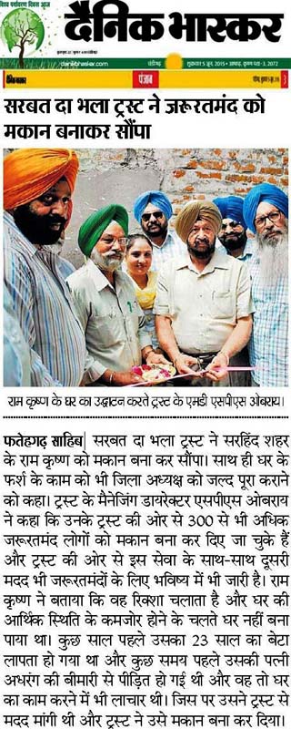 June 2015 -Sarbat Da Bhala Charitable Trust Inaugurated its branch office at Nabha