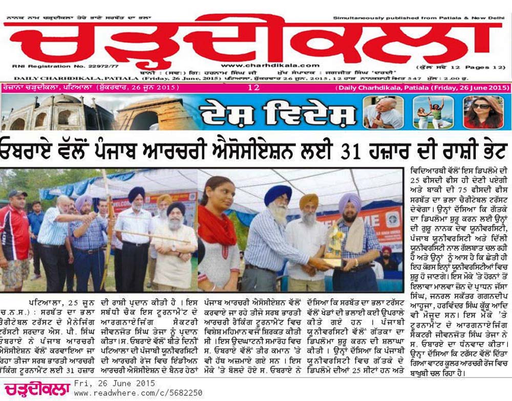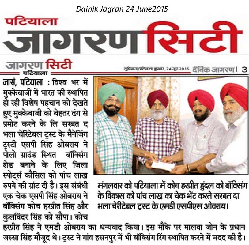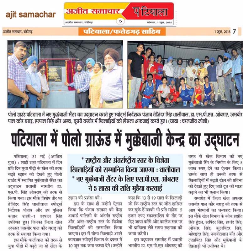 24.06.2015- Donated 5 lakh for Boxing Ring Hall at Polo Ground Patiala