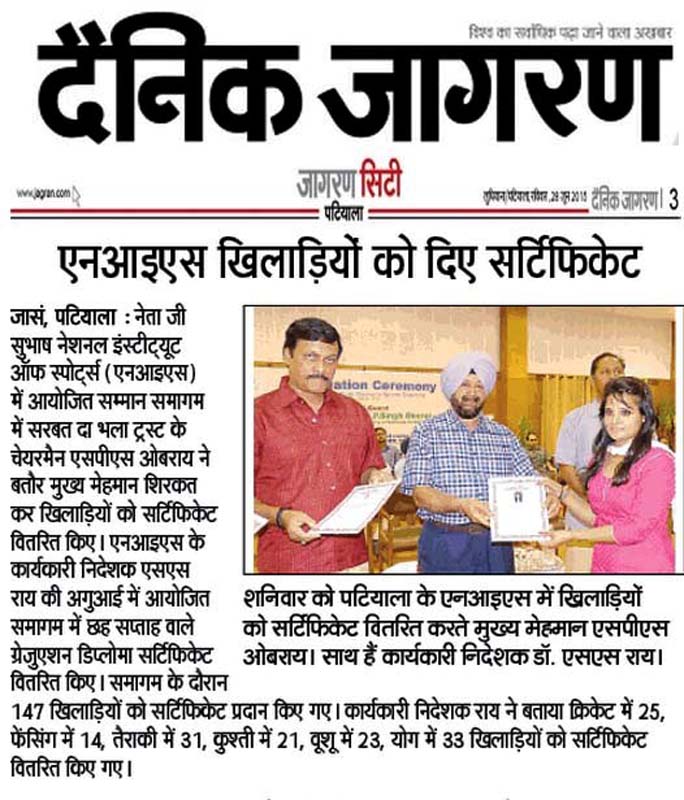 25.06.2015 - Dr. S.P.Singh Oberoi honored 147 players of Neta ji Subash National Institute of Sports
