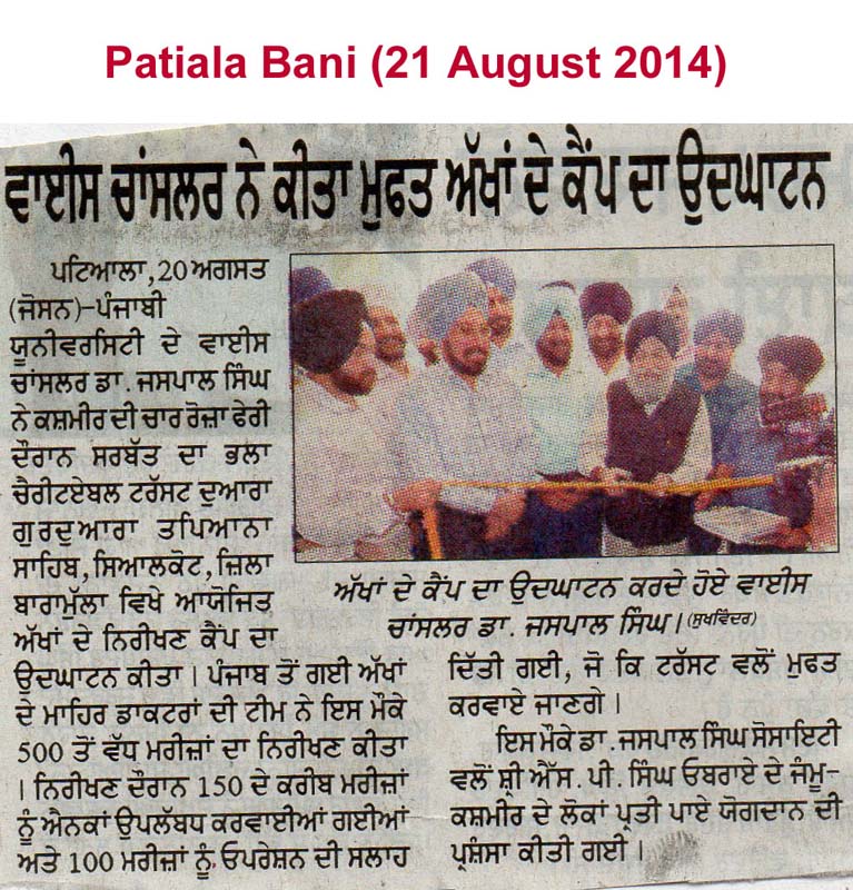 21 August 2014, Eye & Operation Camp at J&K
