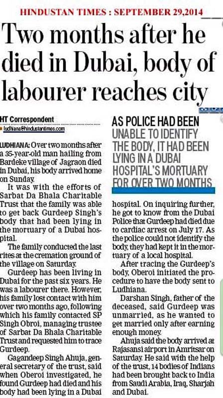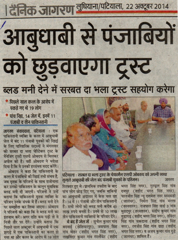 22 Oct, 2014,MAKING EFFORTS TO RELEASE DETAINED PUNJABIS in ABU DHABI JAIL