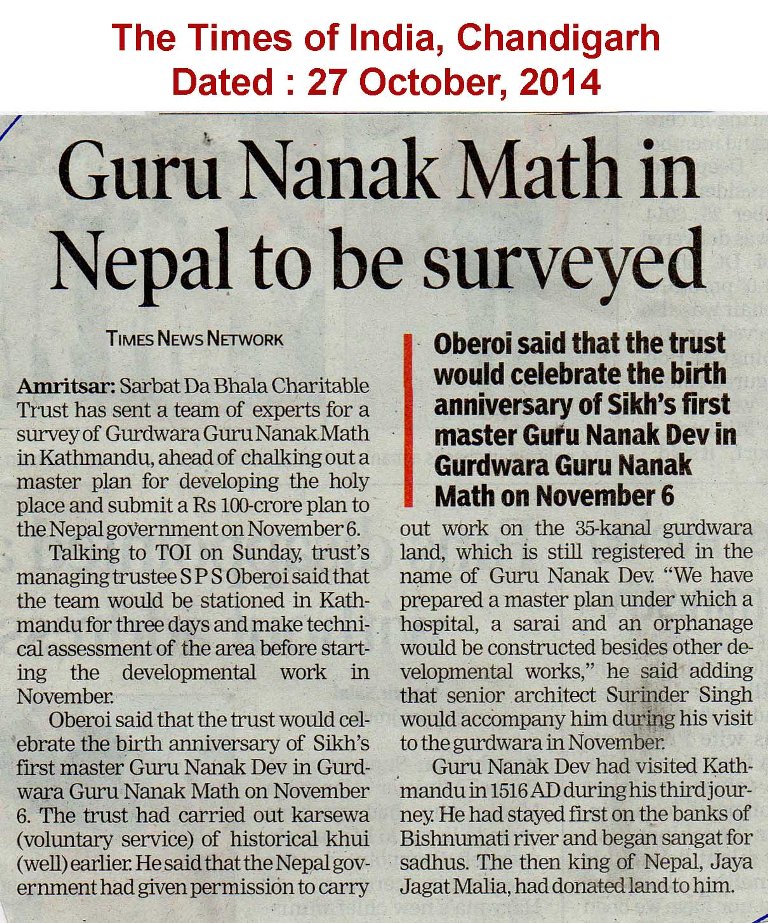 28-10-2014,GURU NANAK MATH IN NEPAL to be SURVEYED