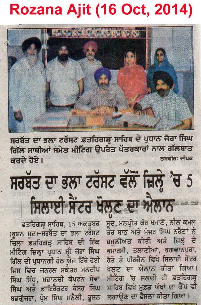 16 Oct, 2014, Opening Stitching Centre in Fatehgarh Sahib
