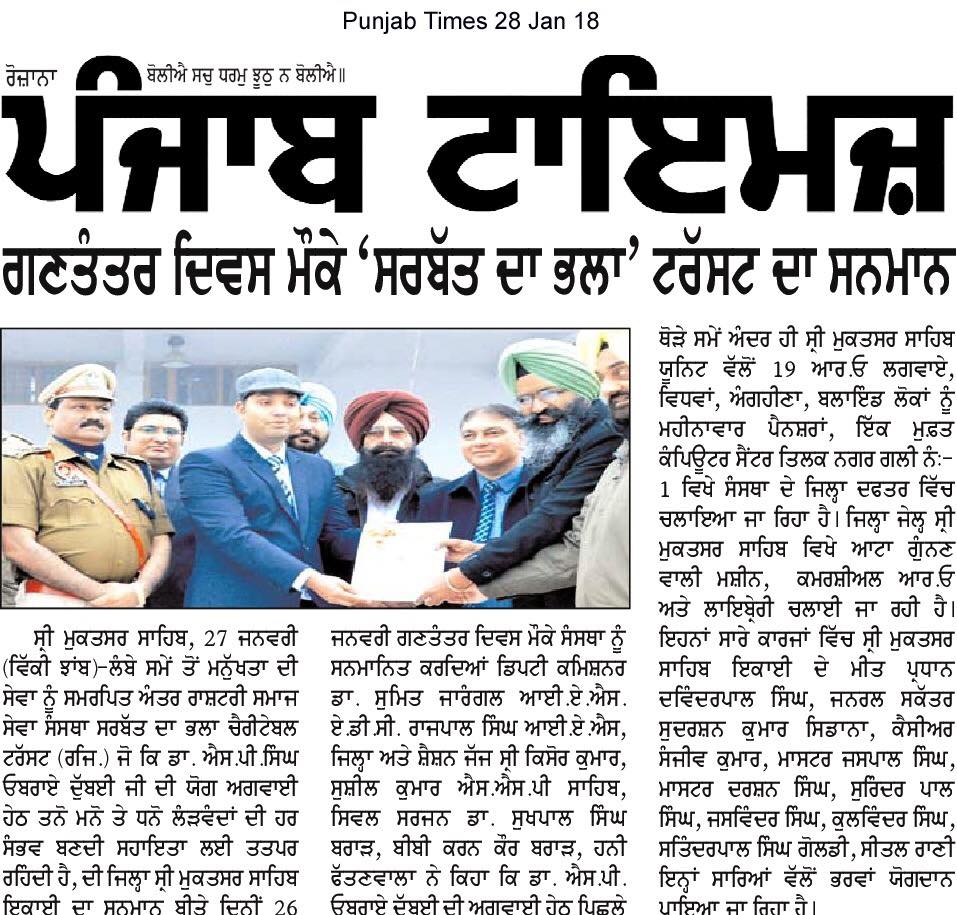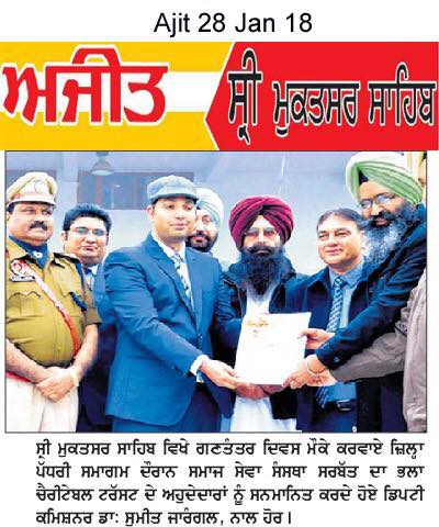Sarbat Da Bhala charitable trust Sri Muktsar Sahib are being honoured by honorable DC Sahib