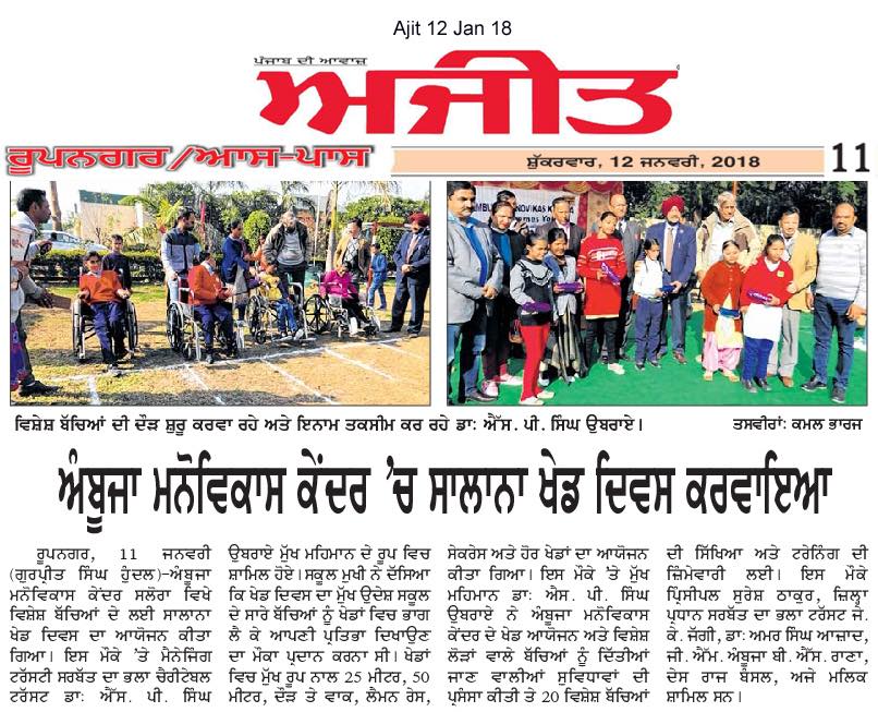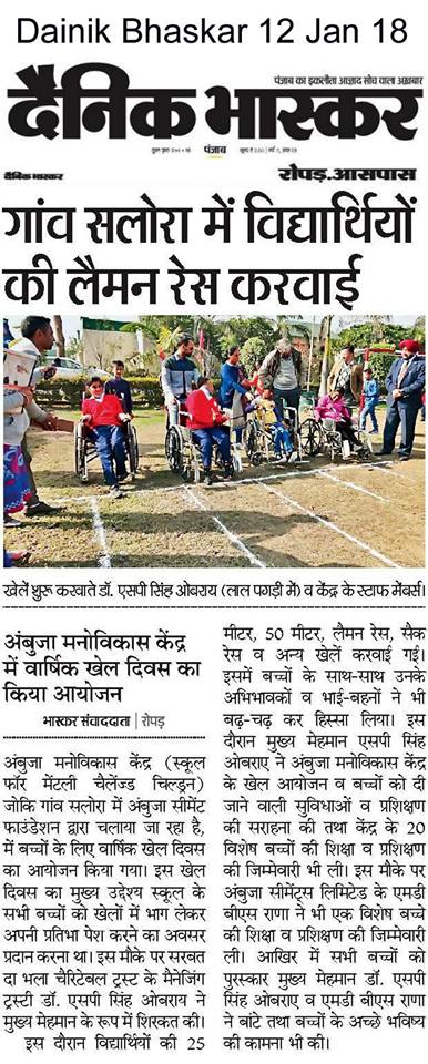 Prof ( Dr ) S P Singh Oberoi Ji attended Annual Sports day of Ambuja Manovikas Kendra at village Salora distt Roopnagar Punjab