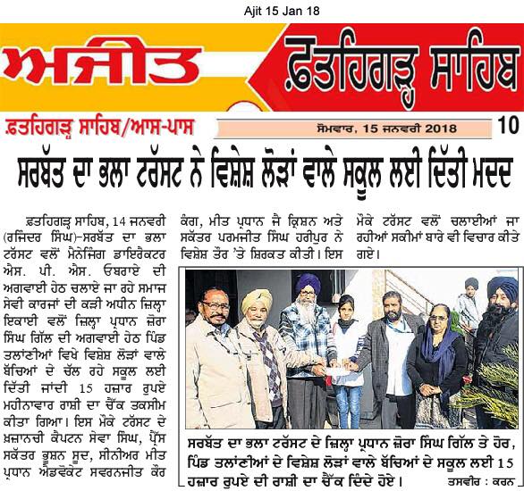 Sarbat da Bhala Chartible Trust units Presidents & team members of Sangrur
