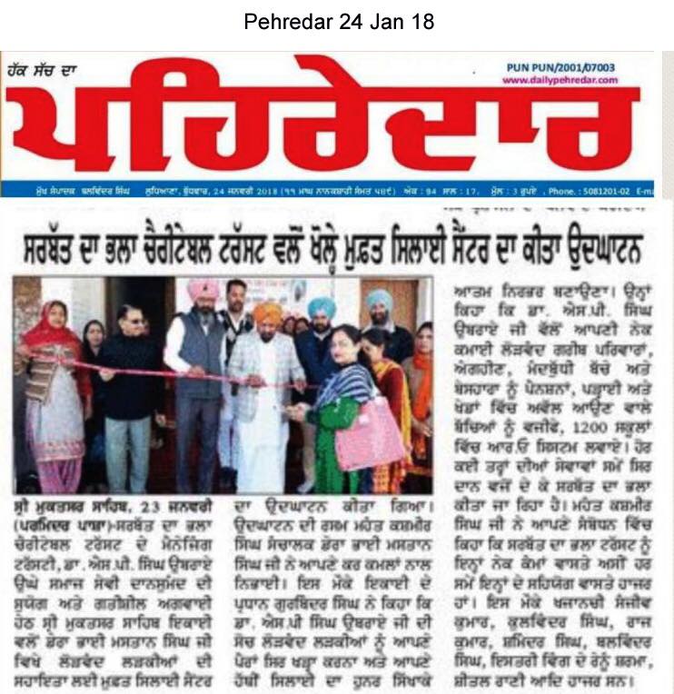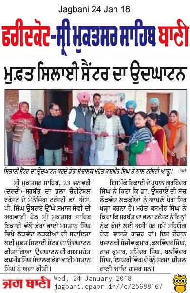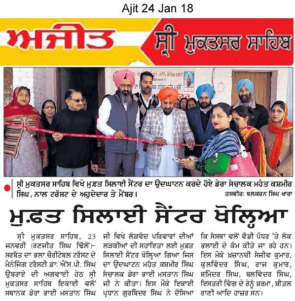 Sarbat da Bhala Charitable Trust opened free Sewing Centre at Dera Bhai Mastan in Muktsar Sahib