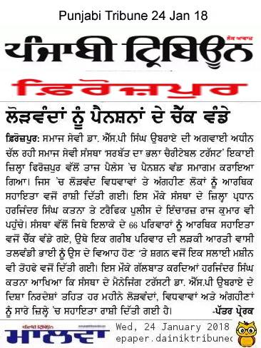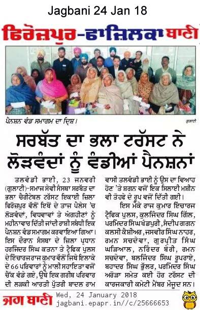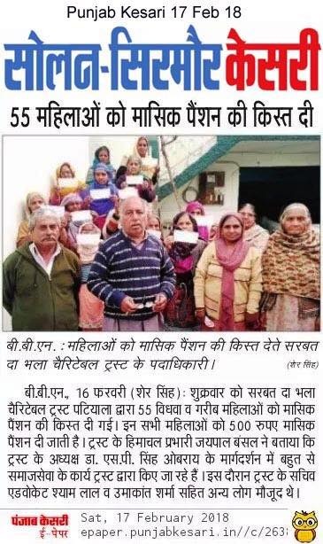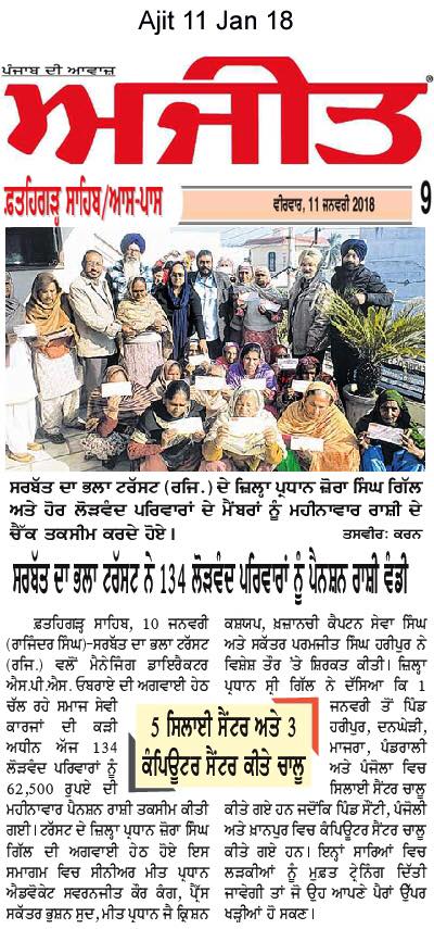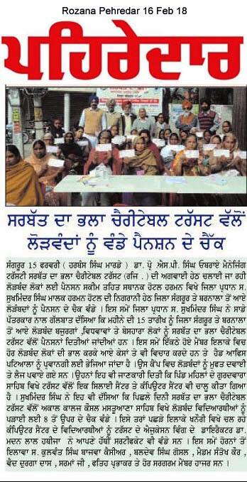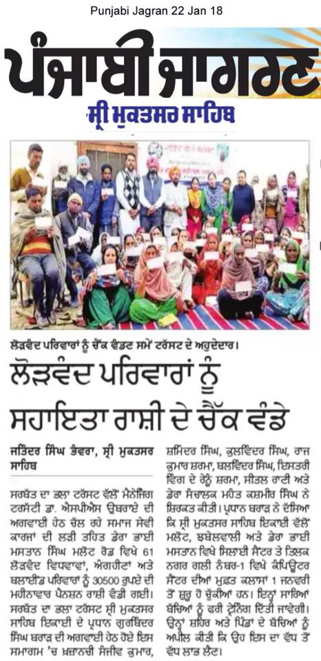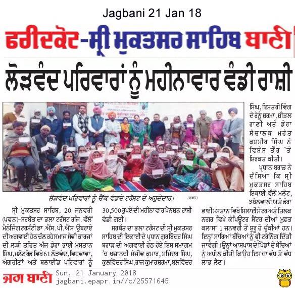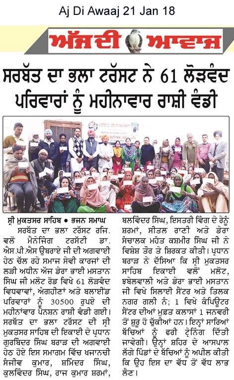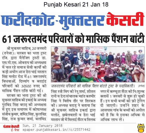 SDBCT team members Sri Muktsar Sahib handed over the monthly Pension cheques to needy people