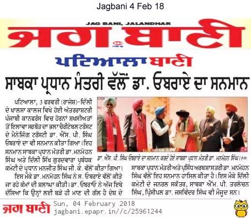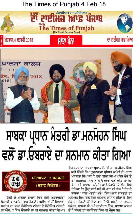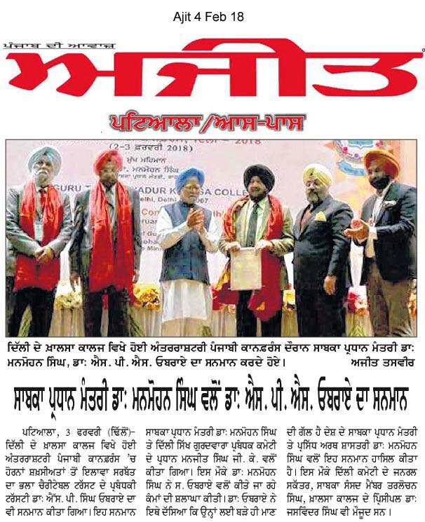 Prof ( Dr ) S P Singh Oberoi Ji honoured by Former Prime Minister Dr Manmohan Singh Ji