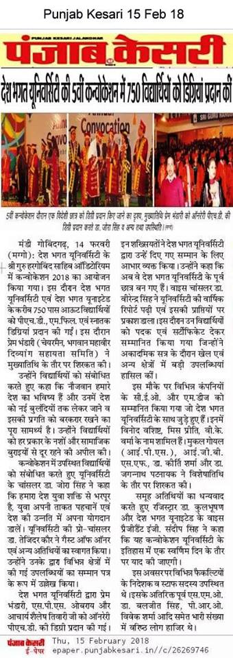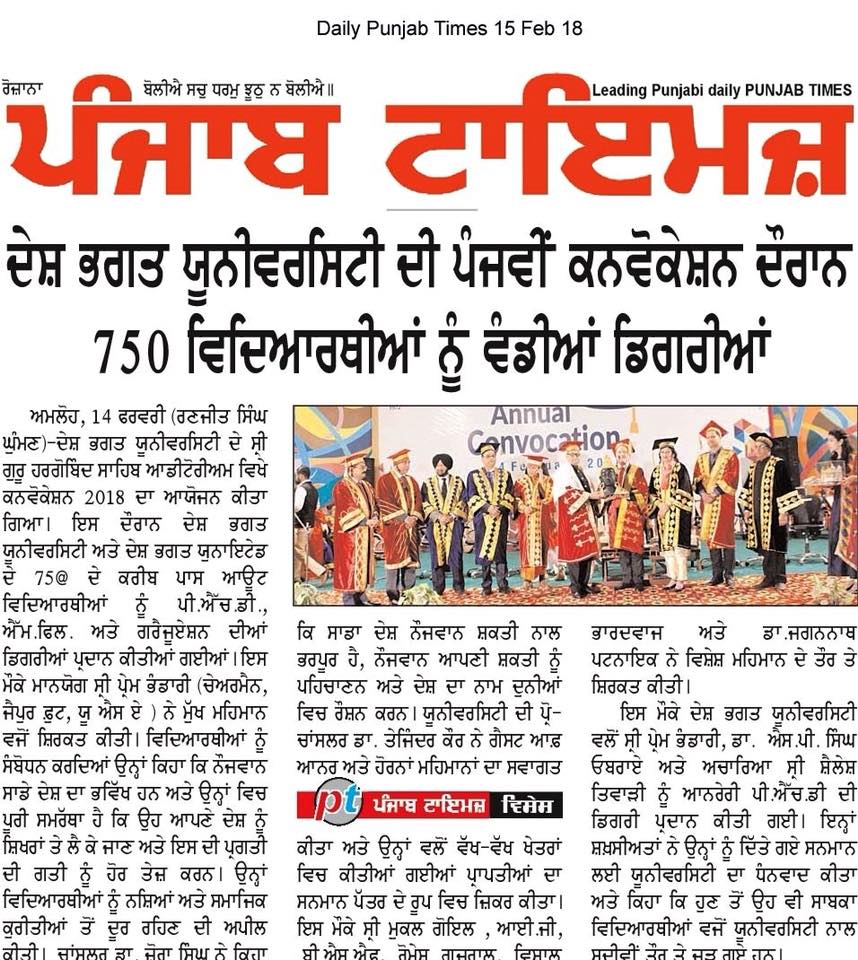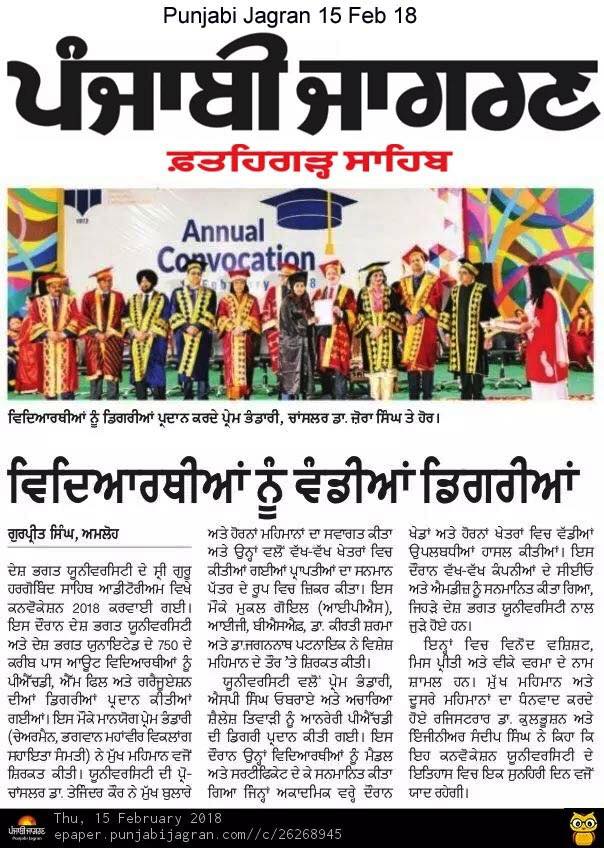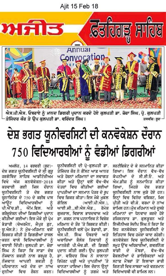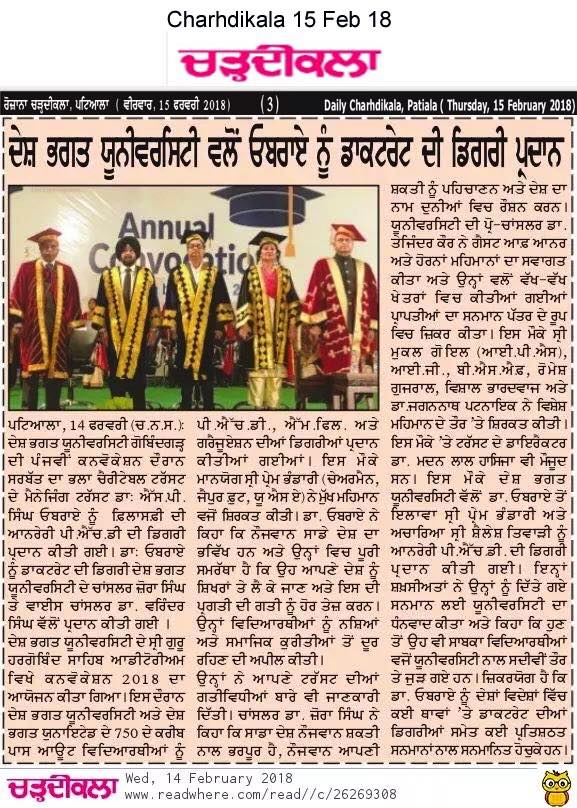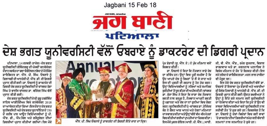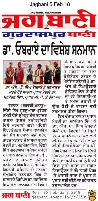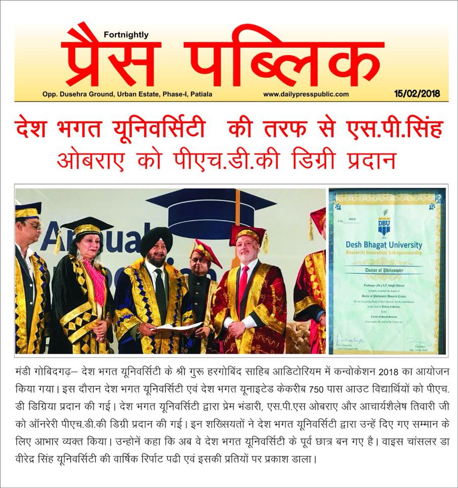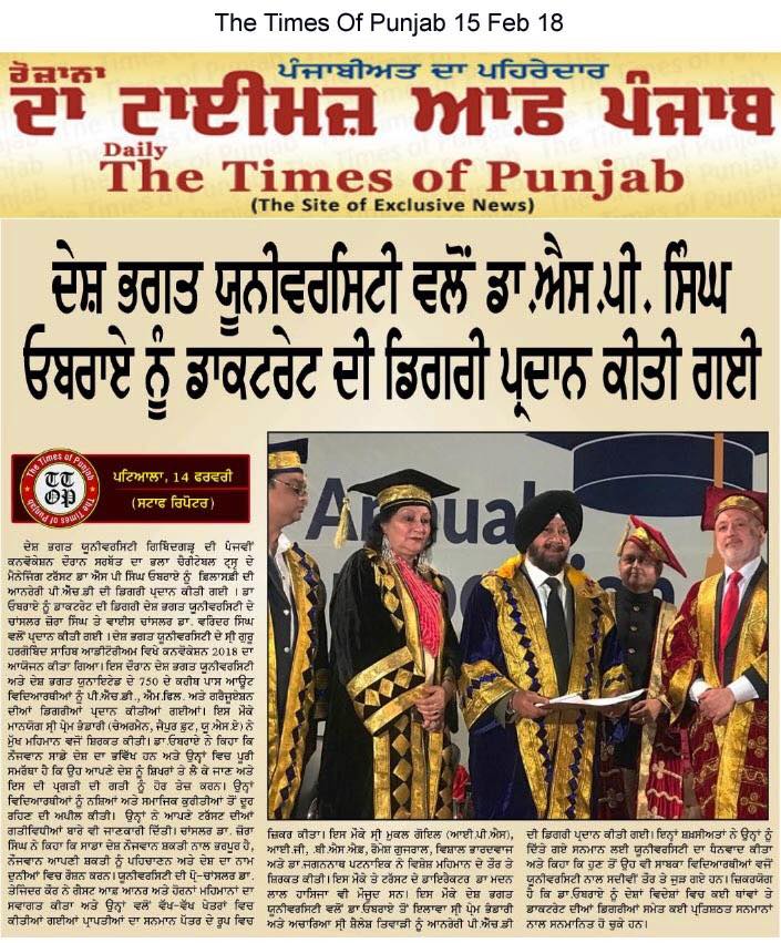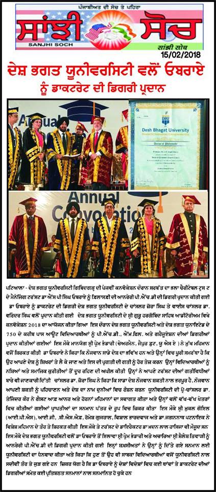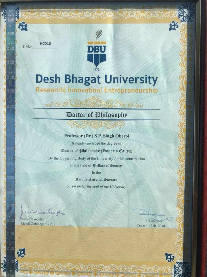 ( Dr ) S P Singh Oberoi Ji honoured with Doctor of Philosophy Honoris Causa
