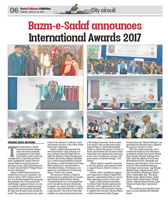 S P Singh Oberoi Ji awarded with Bazm -e- Safar International life time achievement award 2017