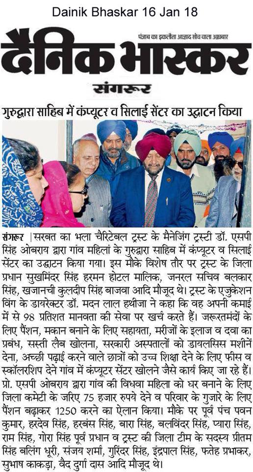 Sarabat da Bhala Charitable Trust opened free Computer Center & Sewing Center at Gurudwara Mehlan Sahib Sangrur