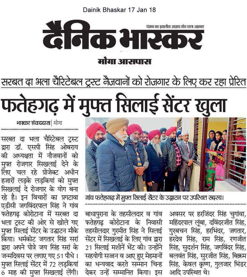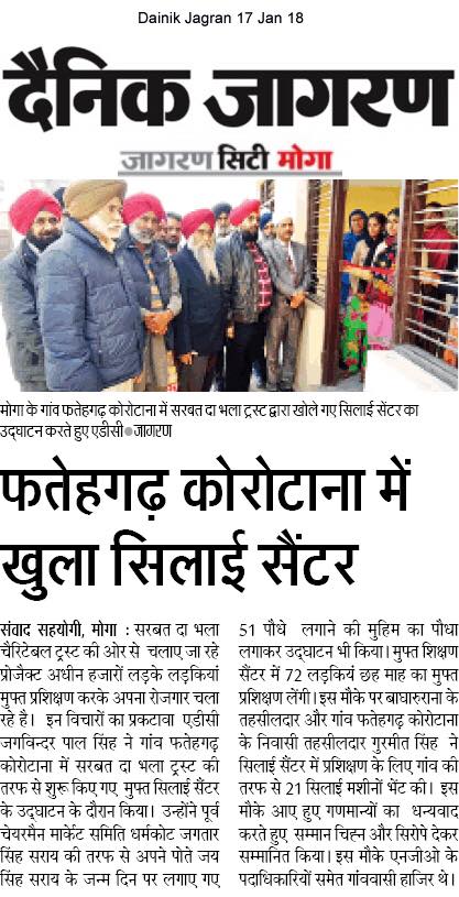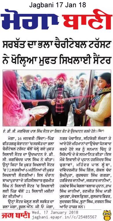 Sarbat da Bhala Charitable Trust opened free Sewing Center at village Korotana district Fatehgarh Sahib