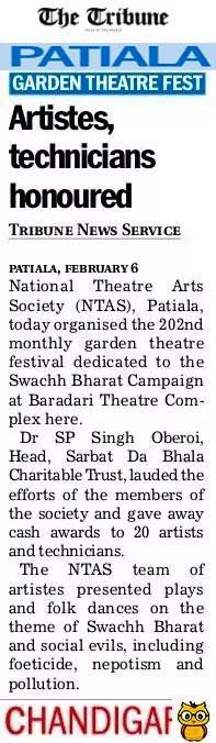 o promote the Art Prof ( Dr ) S P Singh Oberoi gave away the cash award to 20 artists & technicians of NTAS