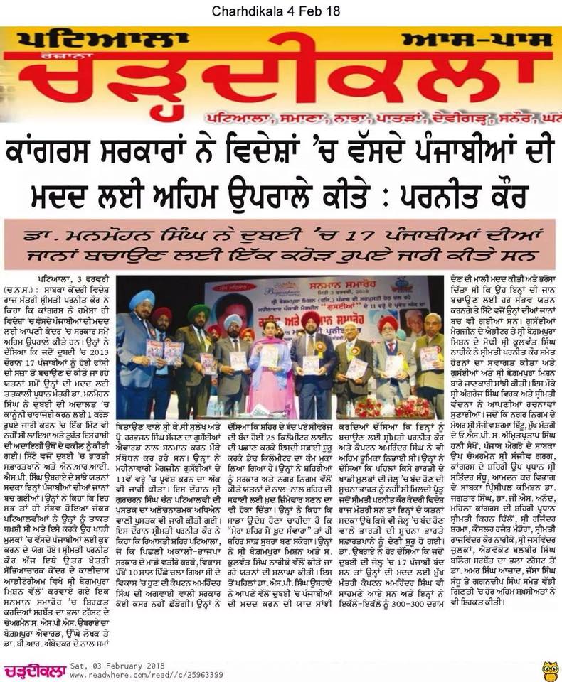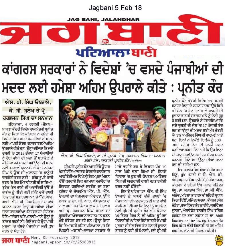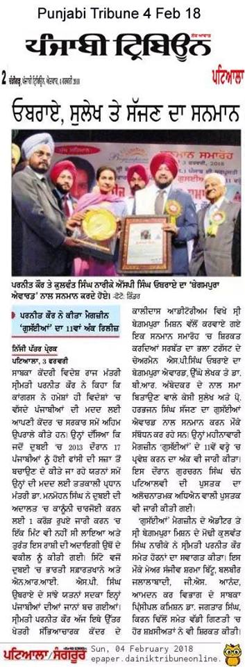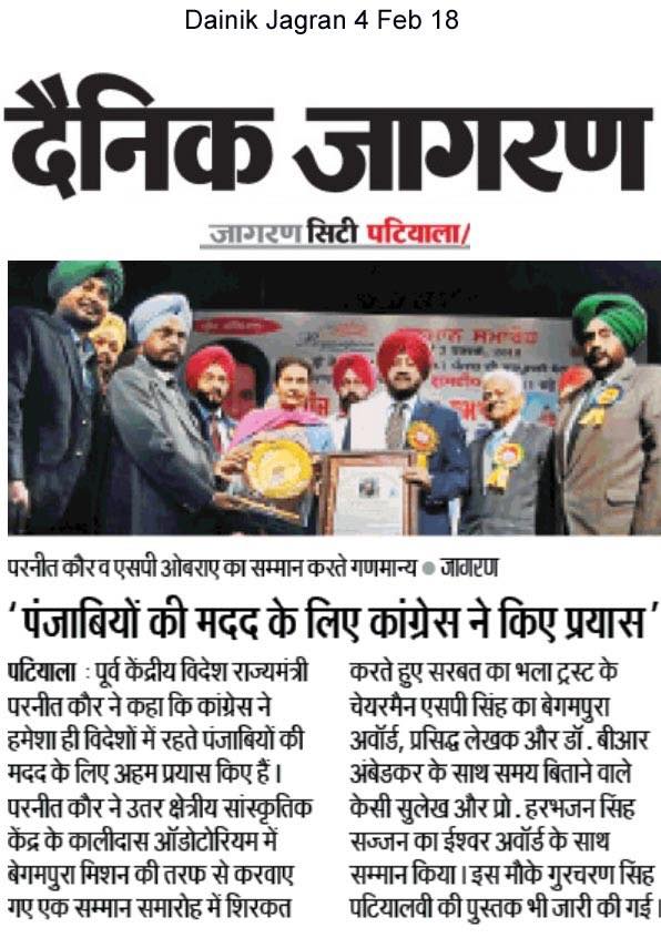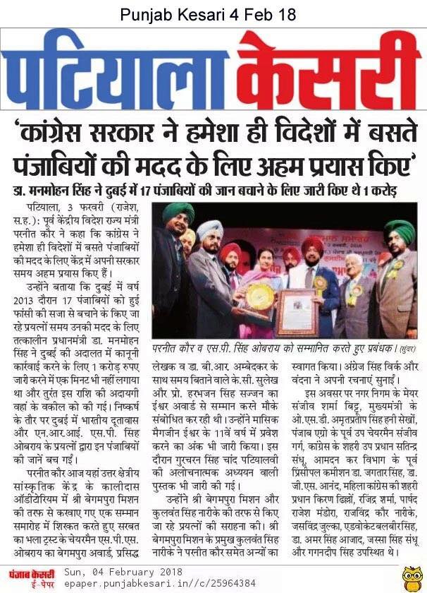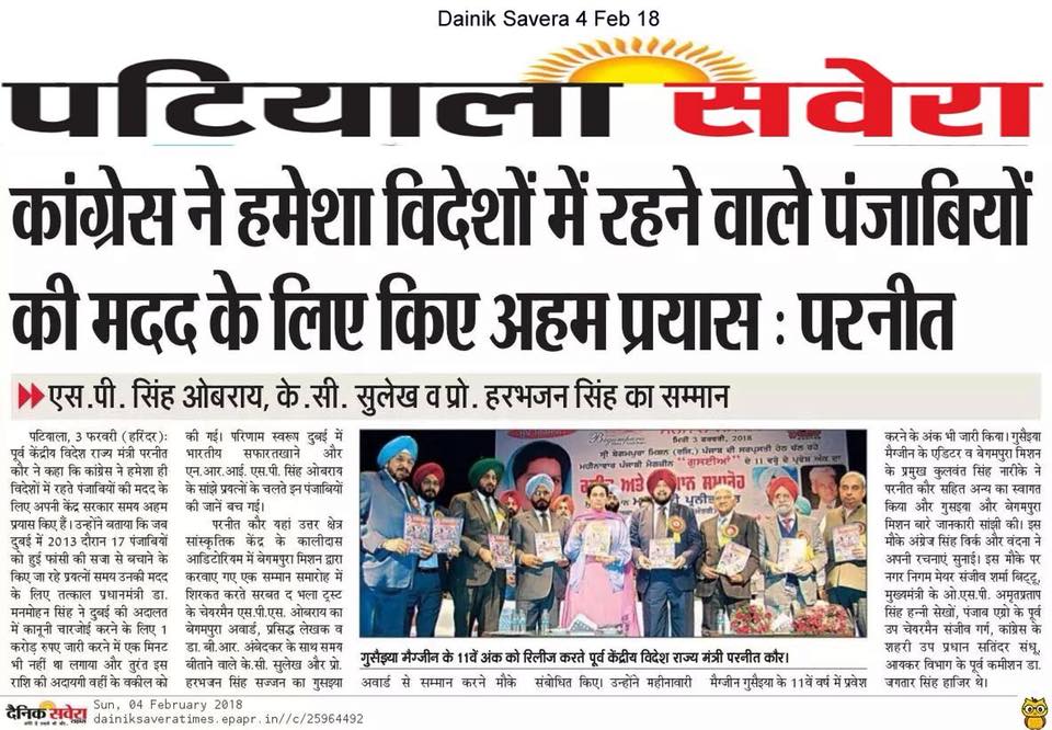 Maharani Parneet Kaur Ji honoured Prof ( Dr ) S P Singh Oberoi Ji with Begampura Award