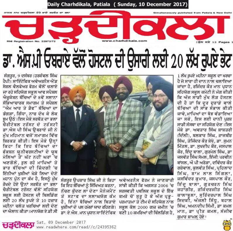 Prof ( Dr ) S P Singh Oberoi Ji attended 8th Annual Function of Sahyog School of Special Education at Sangrur