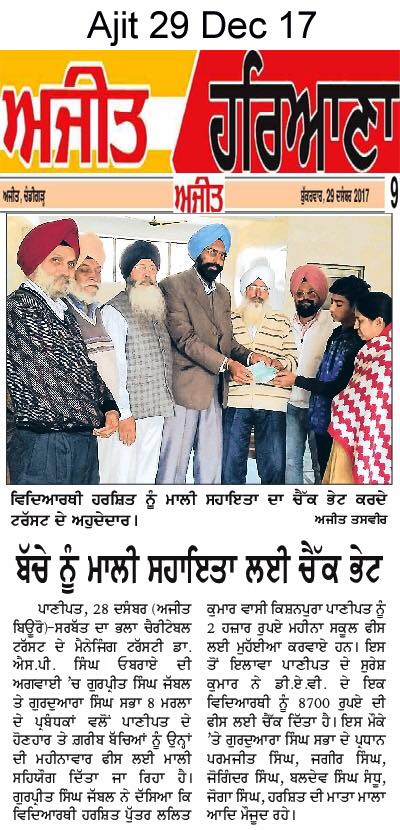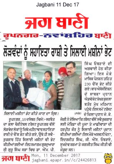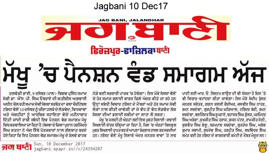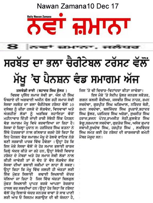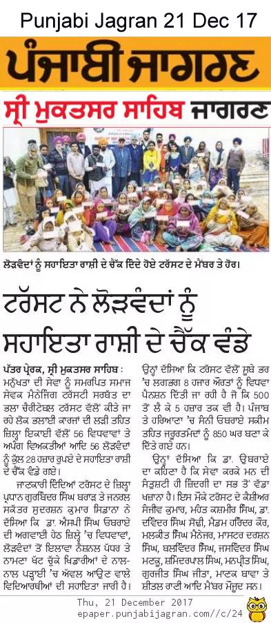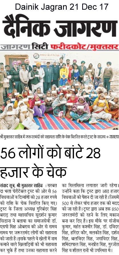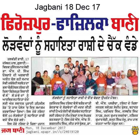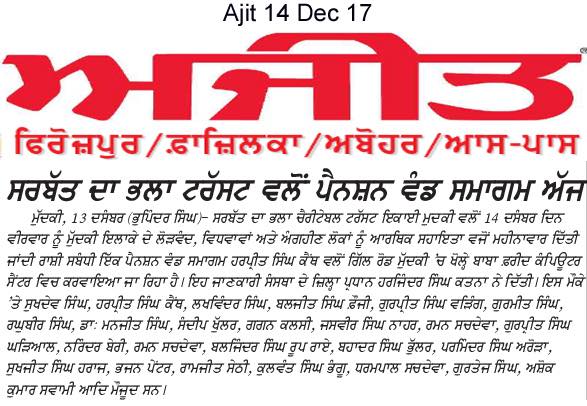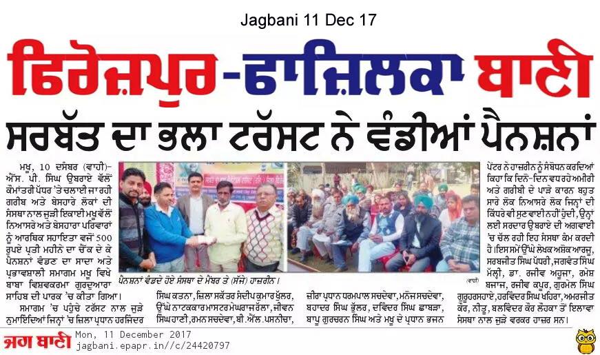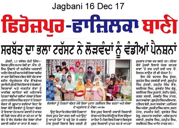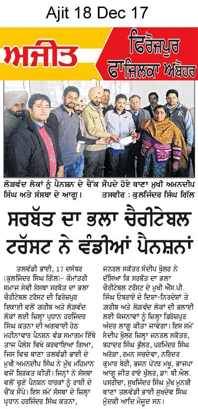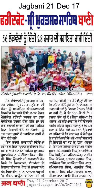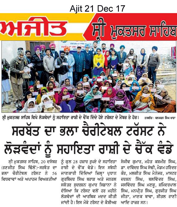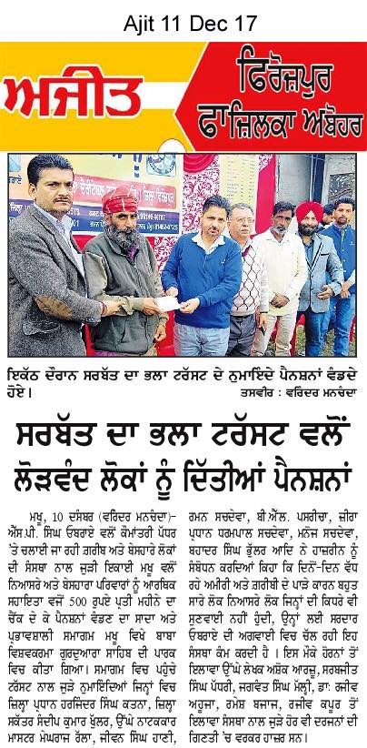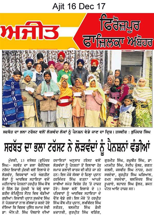 On behalf of Prof.(Dr.) S.P. Singh Oberoi Ji SDBCT Shri Mukatsar Sahib unit handed over the monthly Pension cheques to needy persons