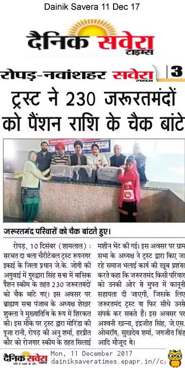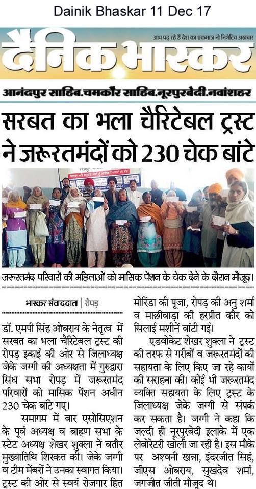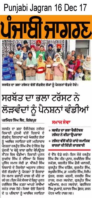 Sarbat da Bhala Charitable Trust Ropar team members handed over the 240 monthly pensions to the needy and widow families