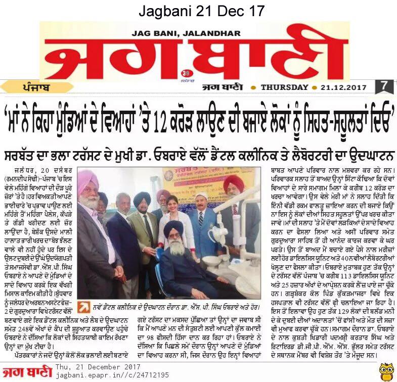 Sarbat da Bhala Charitable Trust opened Sunny Oberoi Dental Center at Gurudwara Singh Sabha