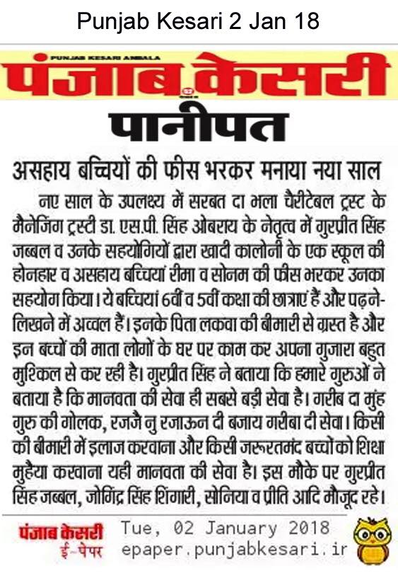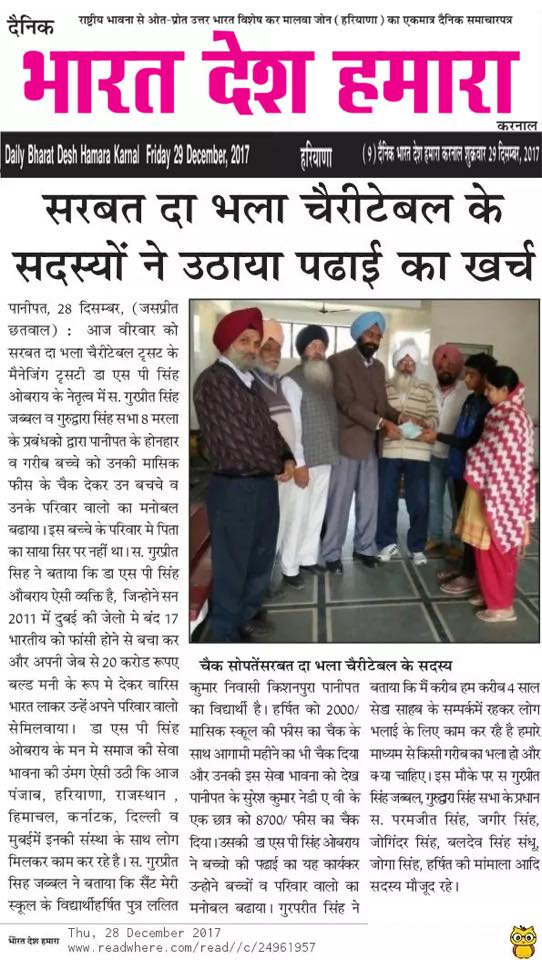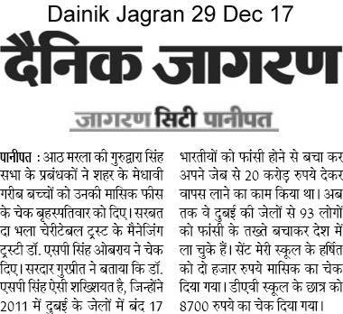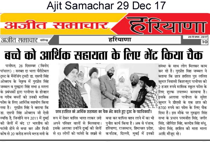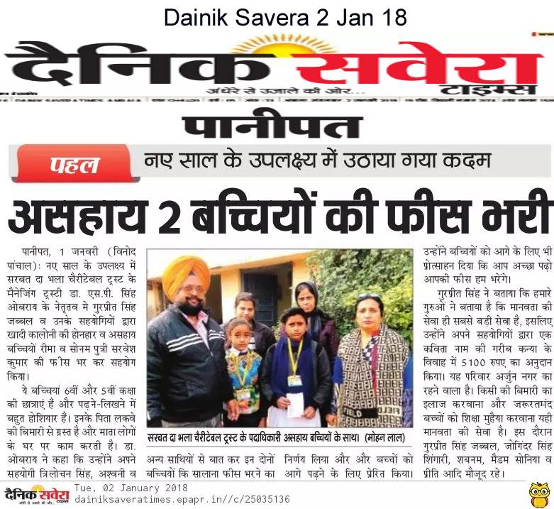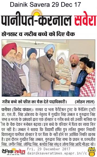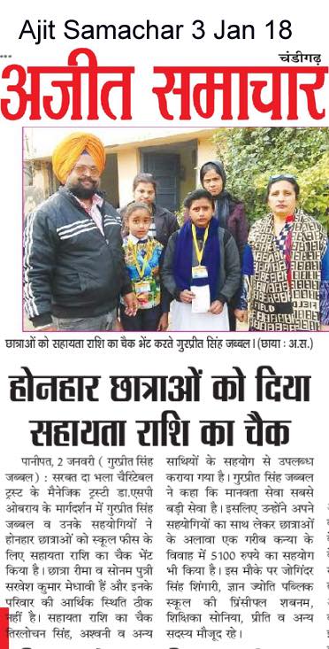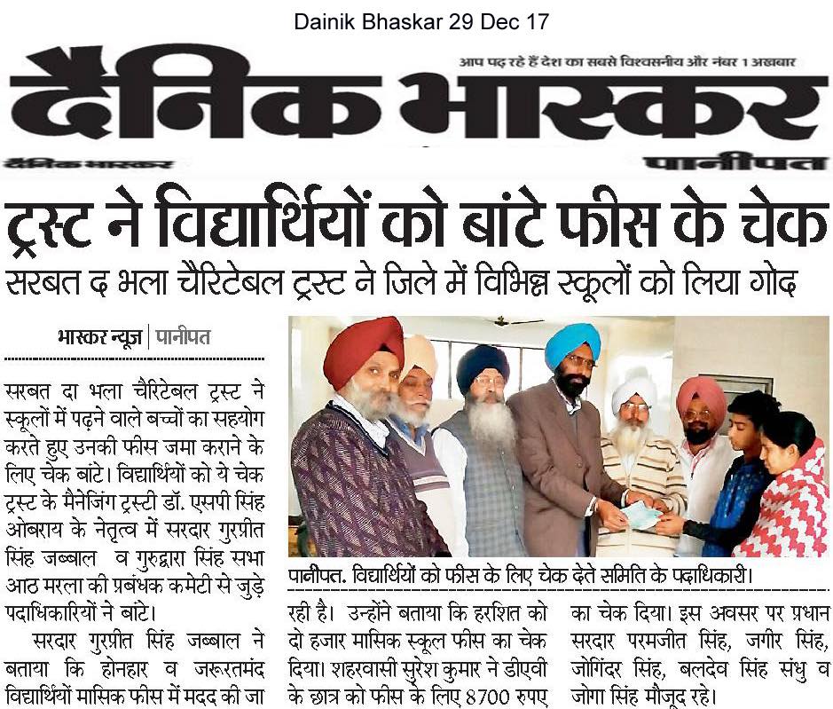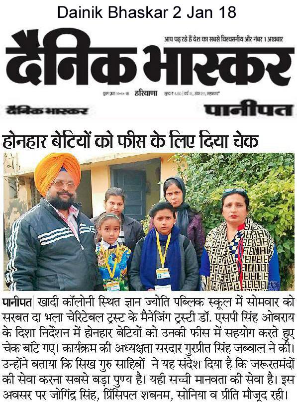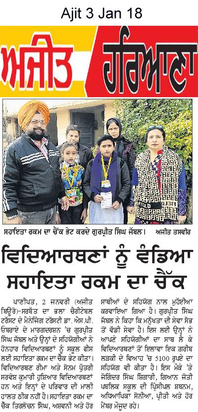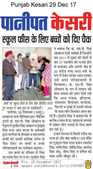 On behalf of Prof.(Dr.) S.P.Singh Oberoi Ji SDBCT Panipat team members handed over the cheques to economical week students for their fees