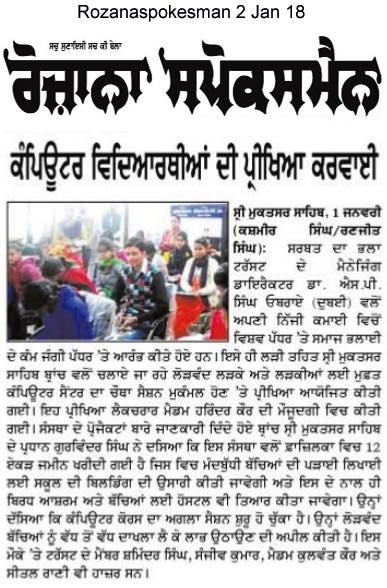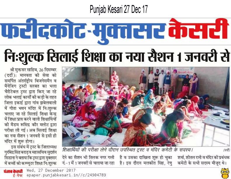 SDBCT Shri Mukatsar Sahib team conducted the examination of SDBCT Free Sewing center students