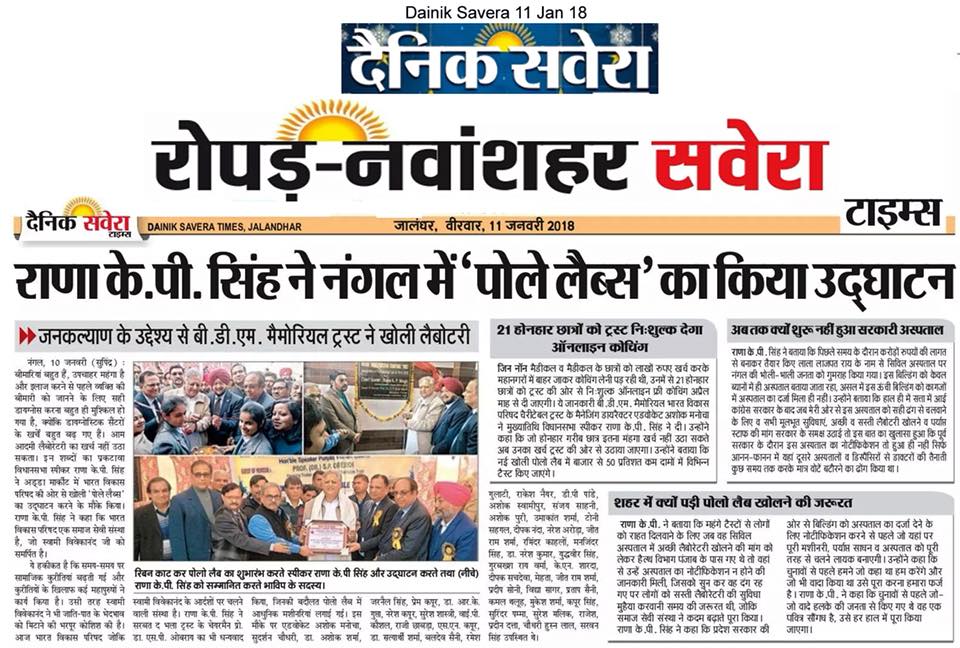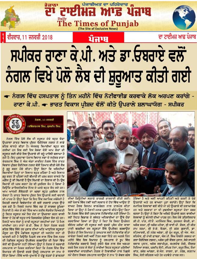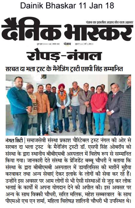 Prof ( Dr ) S P Singh Oberoi Ji along with Dr Azad Visited BBMB hospital at Nangal