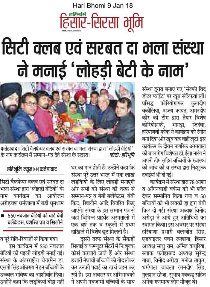 Sarbat da Bhala Charitable Trust & City Welfare association celebrated Lohri Betiya di