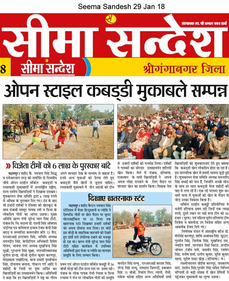 As a Chief Guest Prof (Dr) S P Singh Oberoi Ji attended 4th Kabbadi