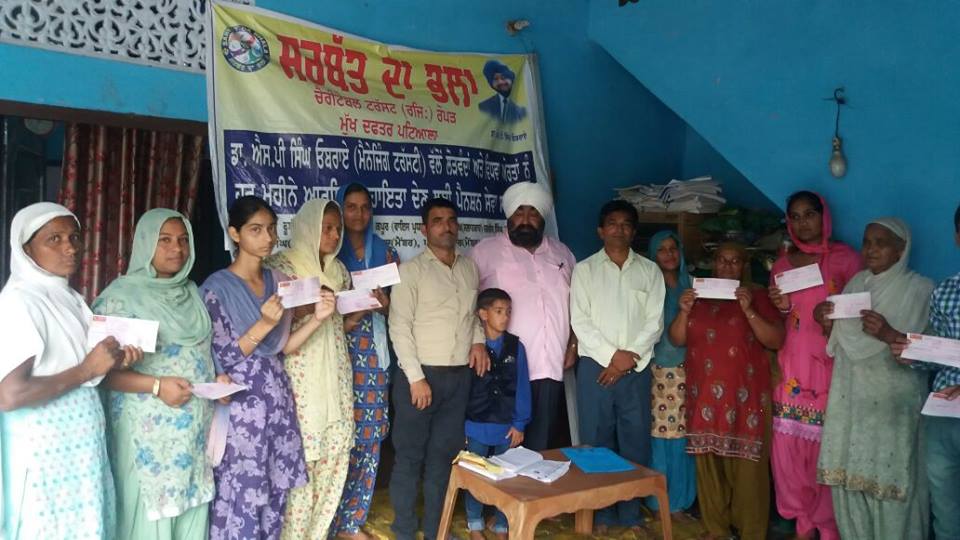 Sarbat Da Bhala Charitable Trust Ropar Unit President & members handed over the Pension Cheques to needy People