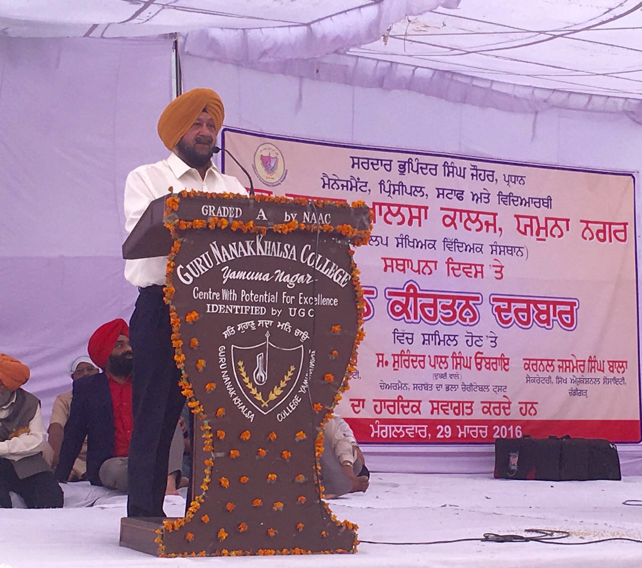 Chief Guest Dr S P Singh Oberoi honoured the Principal & Teachers of Guru Nanak Khalsa College Yamuna Nagar .