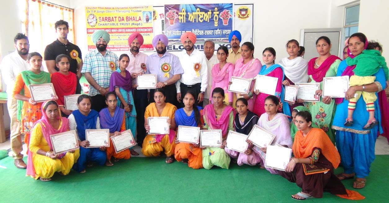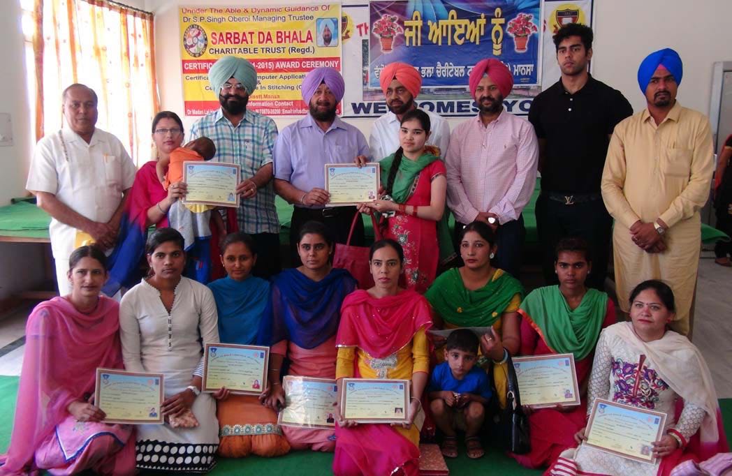 Sarbat Da Bhala Charitable Trust village Borewal Budhladha dist Mansa Computer & Sewing center 150 students successfully completed their courses. Dr S P Singh Oberoi awarded the students with certificates.